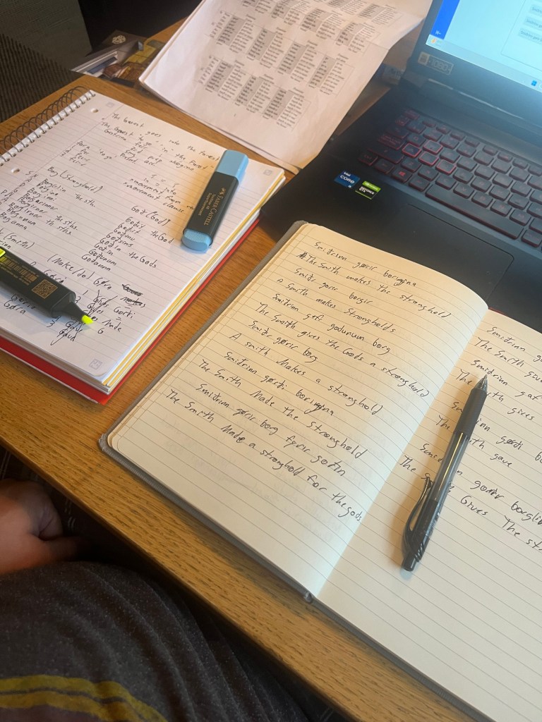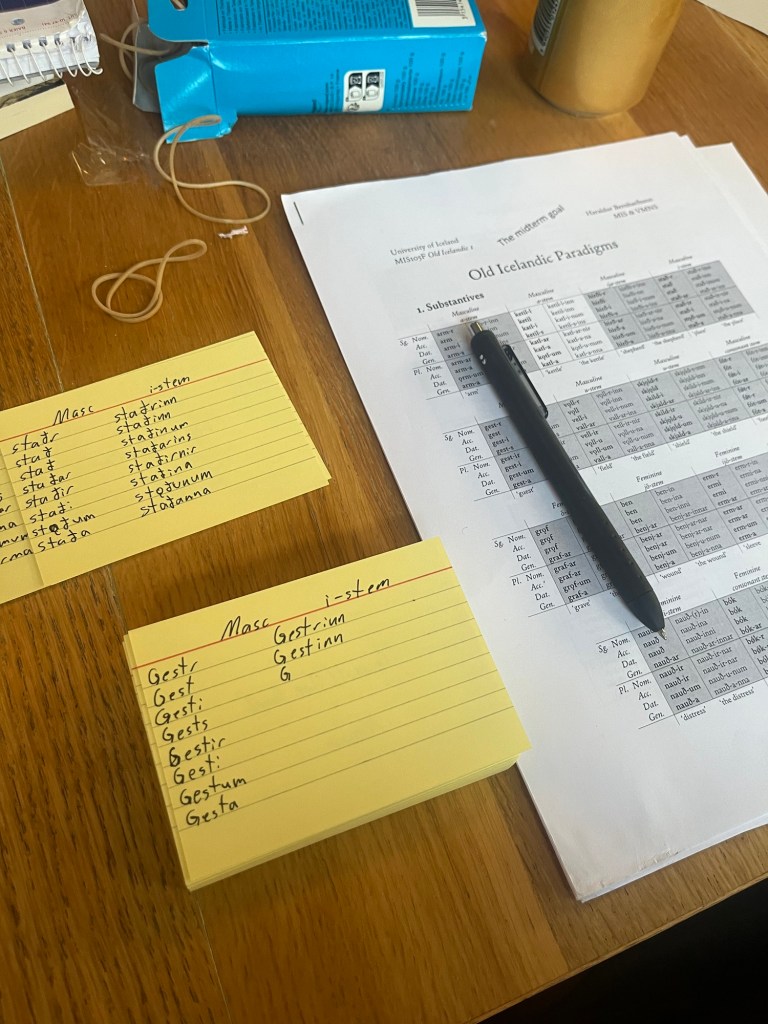 Me and my classmates have been busy every day learning Old Icelandic and working on our academic skills. A weekly habit has formed with me, my partner and out cohort.