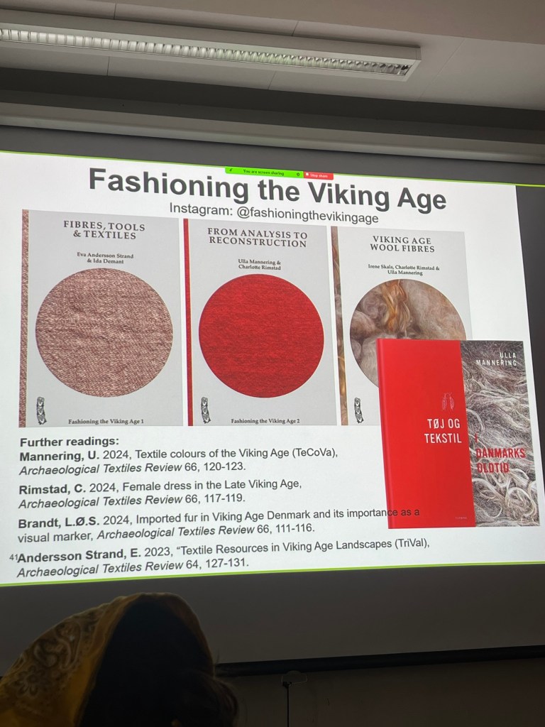 The biggest highlight, especially for the Reenactment side of things, was a lecture on the textile archaeology of Denmark from the Neolithic to the Viking Age by Professor Ulla Mannering from the National Museum of Denmark.